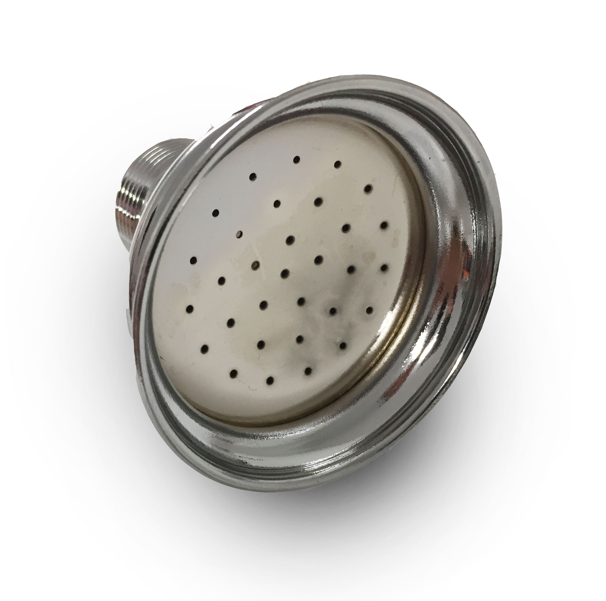 This shower rose has been modified to remove the ball joint fitting which results in high water flow to allow maximum massage action.
